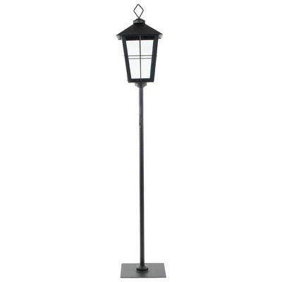 Lanterns accent any decor style from traditional to contemporary. This lantern with hook is the perfect addition to entryways, porches, or your patio. Place a candle inside the lantern to create a cozy atmosphere. The hook allows you to hang your favorite wreath or sign. The sleek metal and glass are a great way to add a timeless chic touch to your living space or a unique touch to holiday decor.Product Features:Matte black candle lantern wreath holder Mission-style lantern has a hinged door for easy accessLantern can hold (1) candle – not includedHook allows you to hang a wreath or signSome easy assembly is requiredRecommended for indoor use only – if using outdoors place in a covered areaDimensions: Lantern: 43.75″H x 7″W x 7″DBase: 7.25″ diameterMaterial(s): metal/glass