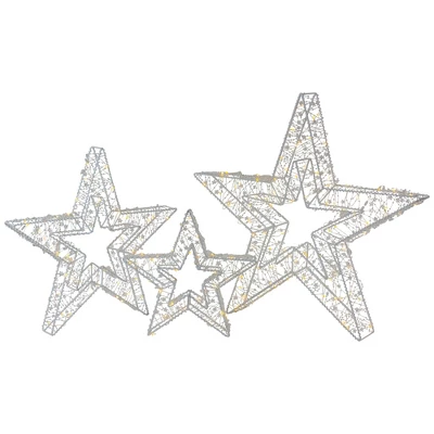 - Set Of 3 Led Lighted Stars Christmas Decoration