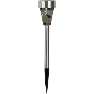 Designed to illuminate your pathways, driveway, or garden, these solar lights provide bright energy efficient light that will last all night long. Made with weather-resistant materials each marker has a solar panel that absorbs the sun during the day and automatically turns on at dusk. These solar lights emit a bright white light that is both attractive and functional. The solar-powered feature makes installing these markers easy allowing you to use them in any place that gets direct sunlight. Upgrade your outdoor lighting today!Product Features:Red mosaic stained glass solar powered LED pathway markersEach pathway marker contains (1) white LED lightsMarkers contain (1) 1.2V AA100mAh NI-MH rechargeable batteryOn/off switch inside of light tubeWorking time 6-8 hoursGround stakes are includedDimensions: 15.5″ high x 3″ diameterMaterial(s): plastic/stainless steel/glassNote: set contains 3 solar pathway markers